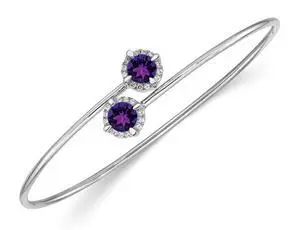 14K White Gold 4/5 Carat (ctw) Amethyst Bangle Bracelet with Diamonds 1/8 carat (ctw)