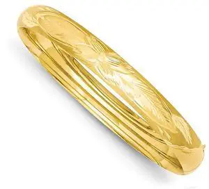 14K Yellow Gold Florentine Engraved Hinged Bangle Bracelet (8.00 mm)