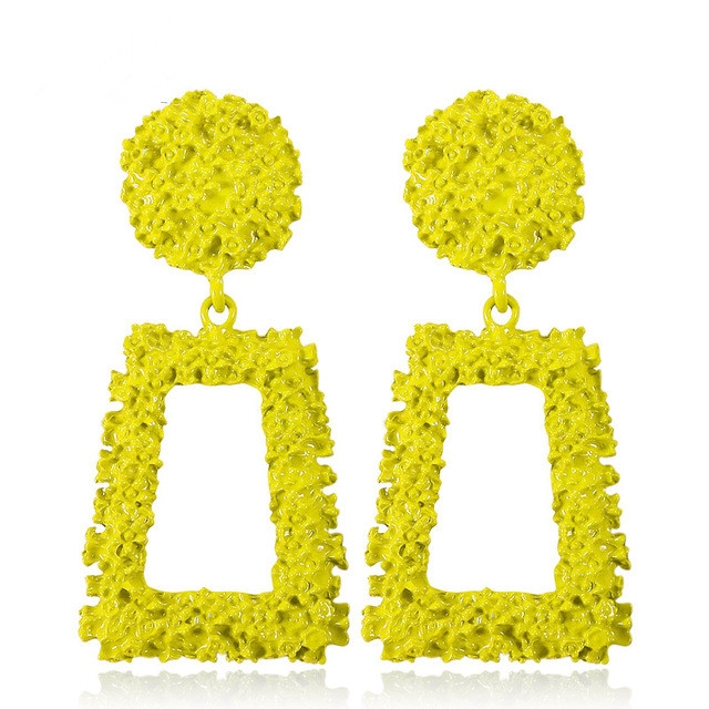 Exaggerated Scrub Geometric Earrings Trapezoidal Long Metal Earrings (Yellow)