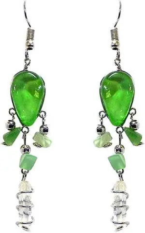 Teardrop Shaped Cat's Eye Glass Bead Chip Stone Wire Wrapped Clear Quartz Crystal Dangle Earrings - Womens Fashion Handmade Jewelry Boho Accessories