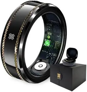 Pachira Smart Ring, Dual 14K Gold Inlays, Fitness/ Sleep/ Stress/ Heart Rate/ SpO2 Tracker, No App Subscription, Waterproof, 7-Day Battery Life, 170+ Sports Modes, iOS & Android Compatible, Black (9)