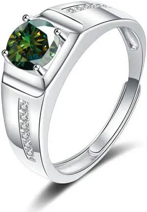 1 Carat D Color VVS1 Moissanite Men Rings S925 Sterling Silver Round Cut Diamond Engagement Rings for Men - Wedding Band Valentine's Day Birthday Gift with Certificate