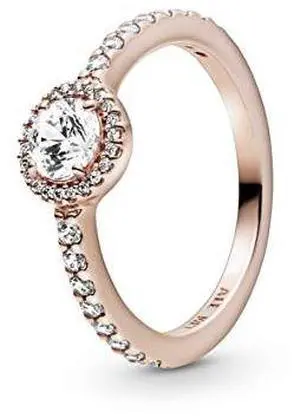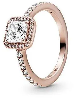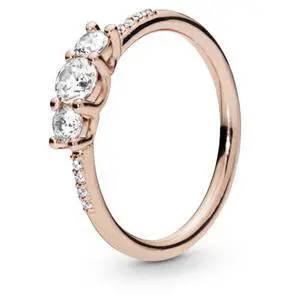 PANDORA Ring in PANDORA Rose with 1 claw-set pear-cut CZ and 46 bead-set clear CZ