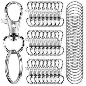 50PCS Metal Lobster Claw Clasp with Key Rings, 25PCS Keychains Clips Hooks and 25PCS Key Chain Rings, Keychain Accessories, Keychain Ring Making kit for Crafts, Silver