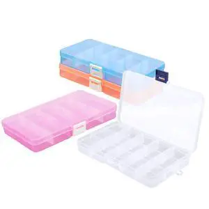 Small Compartment Organizer Case, 4PCS 15-Grid Adjustable Plastic Box with Dividers, Acrylic Fake Nail Charms Bead Rhinestone Jewelry Holder, Craft Screw Hardware Parts Empty Storage Container