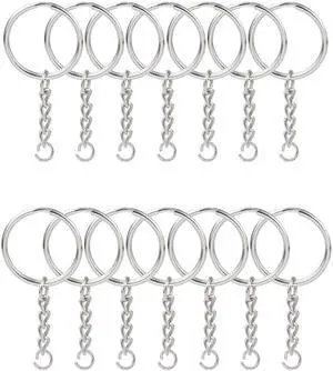 100 Pack Key Ring with Chain and Open Jump,1 inch Split Round Keychain Rings Bulk for Craft Making Jewelry