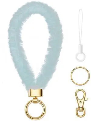 Plush Keychain Wristlet for Women, Cute fuzzy Wrist Lanyard Key Chain for Car Keys (Light blue)