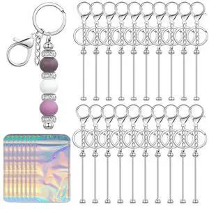 60 Pcs Beadable Keychain Bars Bulk Blank Creative Cute Keychains Bar for Beads Purse Keychains for Women Man
