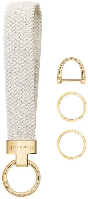 Stretchy Wristlet Keychain, Cute Key Chain, Woven Wrist Lanyard for Car Keys with 3 Keyrings and D-ring for Women Men