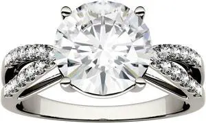 14K White Gold Moissanite by Charles & Colvard 9.0mm Round Engagement Ring-size 7 2.92cttw DEW