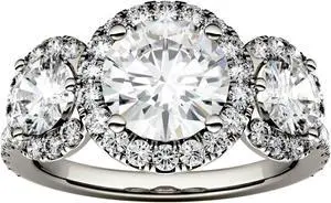 14K White Gold Moissanite by Charles & Colvard Round Three Stone Halo Ring-size 6 3.09cttw DEW