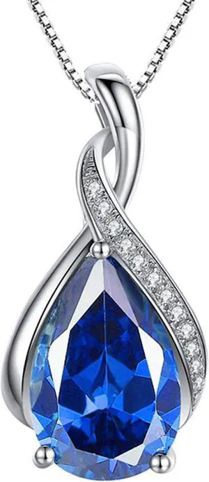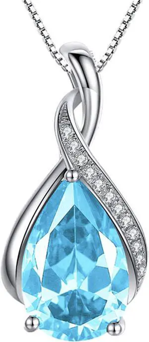 Mabella Sterling Silver Simulated Blue Topaz Birthstone Pendant Necklace, Gifts for Women