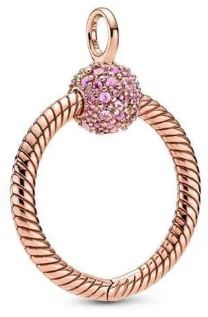 Pandora Signature Pave & Hearts Circle Pendant Necklace