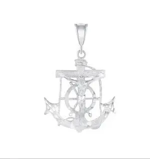 925 Sterling Silver Mariner Crucifix Anchor Cross Pendant Charm Unisex, All Ages, MST