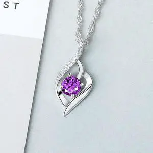 S925 Sterling Silver Light Luxury White/Blue/Purple Pendant Necklace for Women 18K gold plated Inlaid Cubic Zirconia Necklace - Wedding Engagement Valentine's Day Christmas Gift