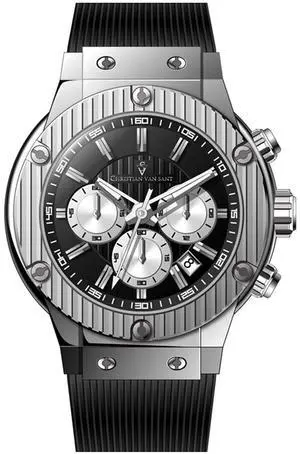 Christian Van Sant Men Royalty II Stainless Steel Quartz Watch with Leather Strap, Black, 20 (Model: CV0372)