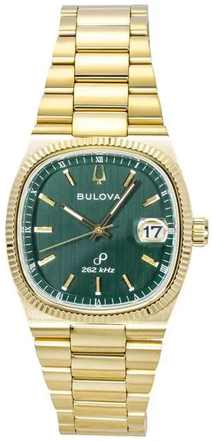 Bulova Surveyor Open Heart Men's Watch 21 Jewels Automatic 97A182 Gold Tone Stainless Steel Champagne Dial 30M