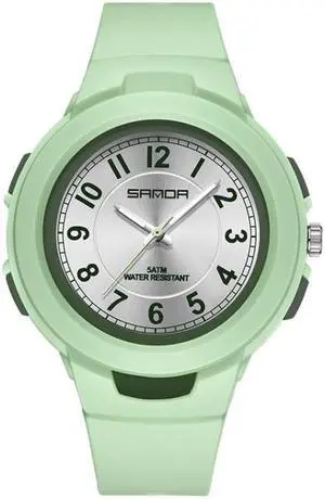 SANDA 1053 Womens TPU Strap Dual Display Waterproof Electronic Watch (Matcha Green)