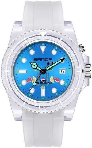 SANDA 6078 Fluorescent Calendar Dial Transparent Strap Quartz Watch for Women (Transparent White Belt Blue Surface)