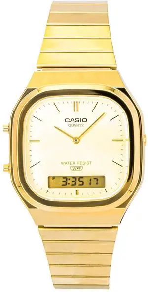 Casio Vintage Analog Digital Gold Tone Stainless Steel Gold Dial Quartz AQ-240EG-9A Unisex Watch