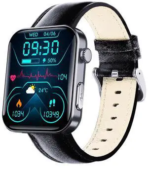 JVFYI Smart Watch 2.1" HD Screen, Bluetooth Calls, Heart Rate & Sleep Monitor, IP67 Waterproof, 7-Day Battery Black leather skin