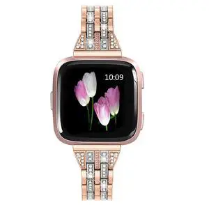 Compatible with Versa 2/Versa Lite/Versa, Women Replacement Metal Rhinestone Bling Bracelet Wristband, Rose Gold
