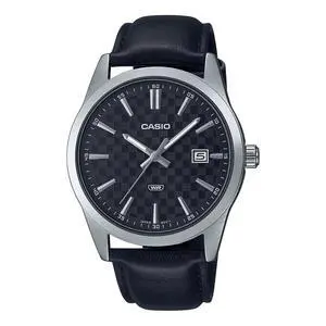 Casio Mens Black Textured Dial Analog Watch with Leather Strap - MTP-VD03L-1AUDF