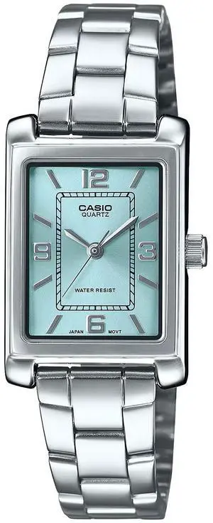 Casio Womens Silver Analog Watch Aqua Dial Stainless Steel Bracelet - LTP-1234DD-2ADF