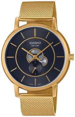 Casio Mens Gold Mesh Bracelet Watch with Black Dial - MTP-B130MG-1AVDF