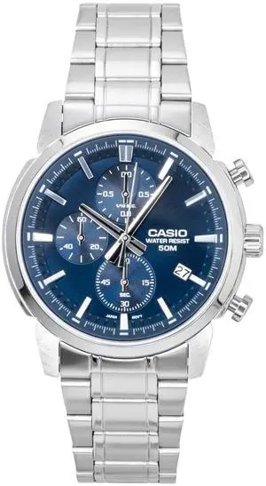 Casio Analog Chronograph Stainless Steel Blue Dial Quartz MTP-E510D-2A2V Men's Watch