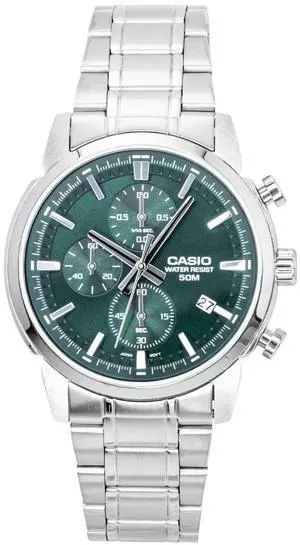 Casio Chronograph Analog Stainless Steel Green Dial Quartz MTP-E510D-3AV Men's Watch