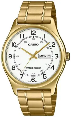Casio Mens Gold Analog Watch with White Dial and Day-Date Display - MTP-V006G-7B