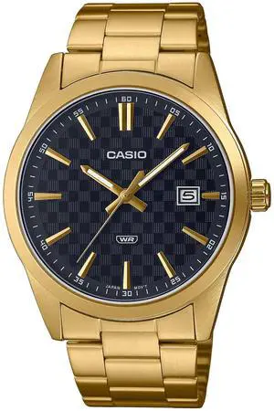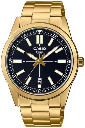 Casio Mens Gold-Tone Stainless Steel Watch with Black Dial - MTP-VD03G-1AUDF