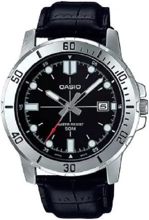 Casio Mens Analog Black Steel Dial Leather Black Band Water Resistant Watch MTP-VD01L-1EVUDF