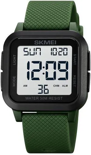 Simple LED Large Digital Display Electronic Watch Outdoor 50 Meters Waterproof Rubber Strap Men Women Teenagers Student Watch