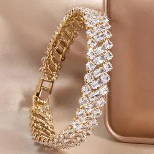 [1pc Luxury Watch] Luxury Elegant 1pc Women's Fashion Watch Buckle Bracelet | Geometric Shape Imitation Zirconia Chain Jewelry | Suitable for Daily Match Wedding Party Gift