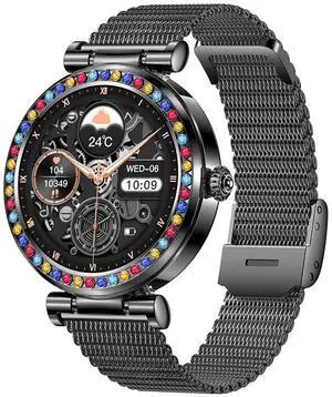 JVFYI Diamond Smart Watch for Women: 1.32" Fitness Tracker with Heart Rate, Blood Oxygen & Sleep Monitor Silver steel