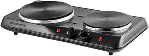 EDB-302BF# Countertop Double Cast Iron Burner, 1500 Watts Electric Hot Plate, Temperature Controls, Power Indicator Lights, Easy to Clean, Black