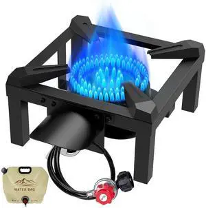 Propane Burner, High Pressure 100,000 BTUs Single Gas Stove with Water Bag& 4.1ft Adjustable Hose with Regulator,Propane Stove for Outdoor Cooking, Seafood Boil,Turkey Fry