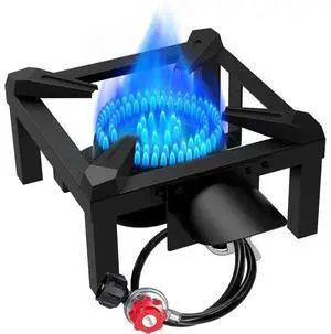 Propane Burner, 100,000 BTUs High Pressure Single Propane Stove - Heat Shield and Guard, 4.1ft Adjustable Hose with Regulator, Gas Stove for Outdoor Cooking, Turkey Fry, Seafood Boil