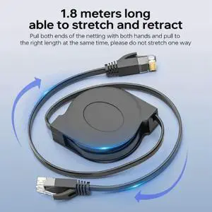 1.8m CAT6 Retractable Ethernet Cable - High-Speed RJ45 Cable Black Plastic Housing, 10Gbps Network Cable