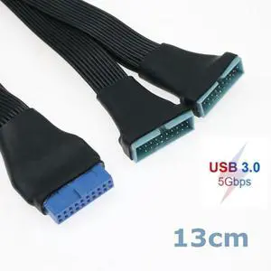 Black 13cm USB 3.0 19/20Pin Internal Extension Header 1 to 2 Adapter Splitter Cable for Motherboard