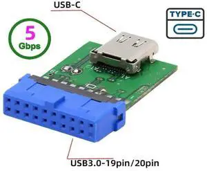 USB 3.1 Type C to USB 3.0 Motherboard Adapter, 19/20 Pin Header, 5Gbps, Green