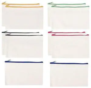 12 Pack Blank Canvas Makeup Bag,Bulk Cosmetic Bags With Multi-Color Zipper,Canvas Zipper Pencil Case Pouch,DIY Craft