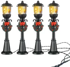 4 Pcs Mini Christmas Lamp Post Train Lamp Miniature Street Lamp Decorative Lights for DIY Dollhouse Village Pathway