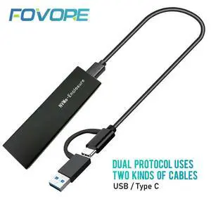 Dual Protocol M.2 SSD Enclosure - USB Type C 3.1 SATA NVME Adapter for PCIE NGFF M2 SSD