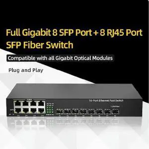 ZJ Full Gigabit 8 SFP Port + 8 RJ45 Port SFP Fiber Switch Compatible with All Gigabit Optical Module Plug and Play