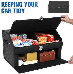 Double-Layer Car Trunk Organizer with Magnetic Lock Car Caddy Organizer Multi Compartment Car Bin for SUV Auto Truck Van