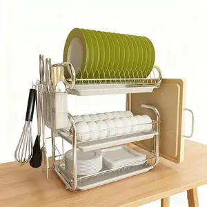 3 Tiers Dish Drainer Large Kitchen Dish Shelf Kitchen Organizer Countertop Dish Drying Rack for Kitchen