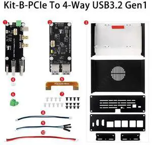 Pi 5 Box Case Kit-B PCIe to USB3.2 Hub All Ports To Pi's USB Side